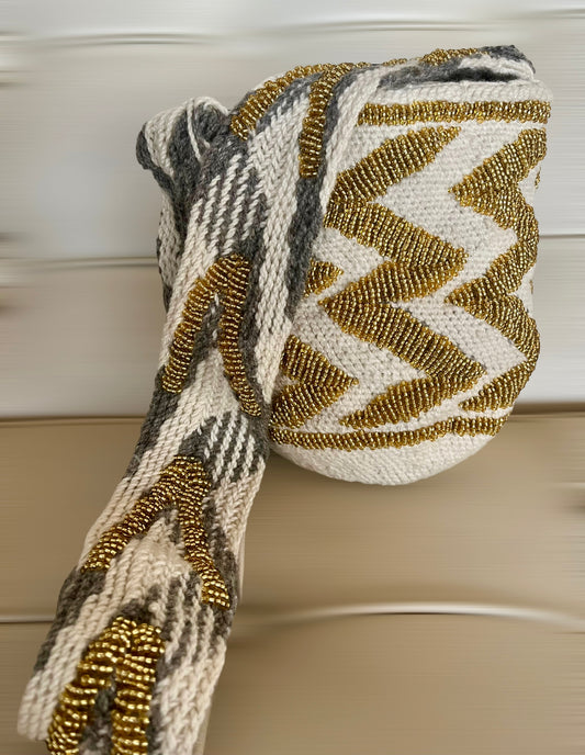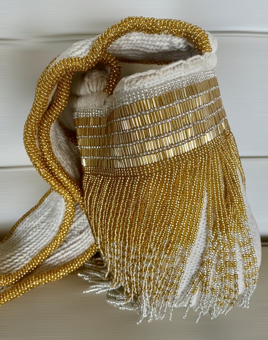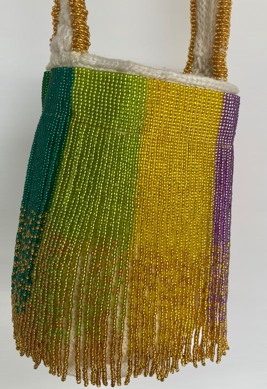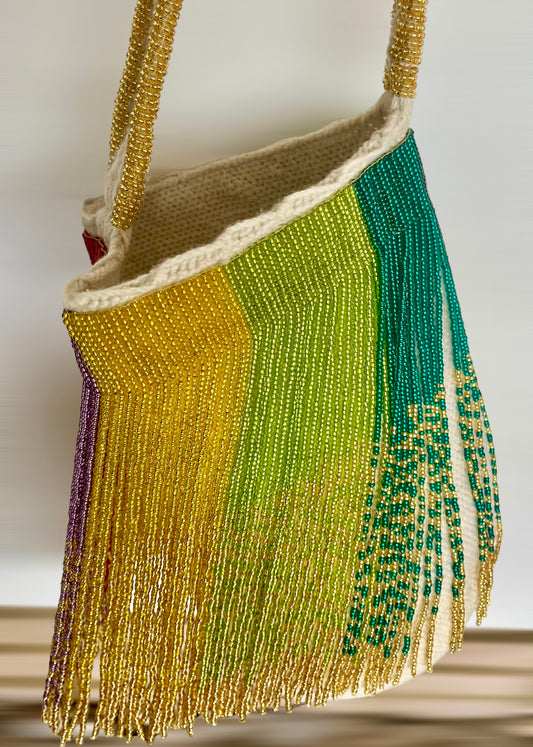 Large Rainbow Beaded Fringe Arhuaca Bag