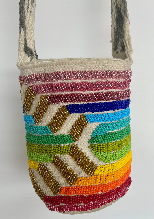 Medium Rainbow Fringe Beaded Arhuaca Bag